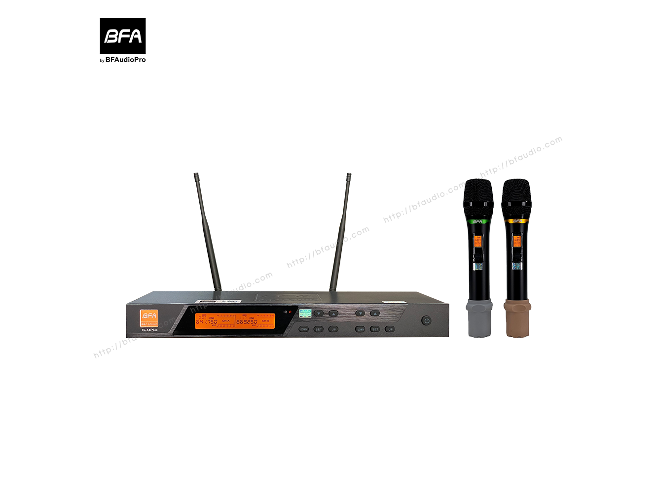 Thiết kế hiện đại và Trực quan Sản phẩm sở hữu vẻ ngoài sang trọng với màn hình LCD độ phân giải cao, hiển thị rõ nét các thông số về tần số, dung lượng pin và cường độ tín hiệu. Micro cầm tay được thiết kế chắc chắn, tích hợp ăng-ten ngầm bên trong giúp tối ưu hóa việc truyền dẫn tín hiệu RF.